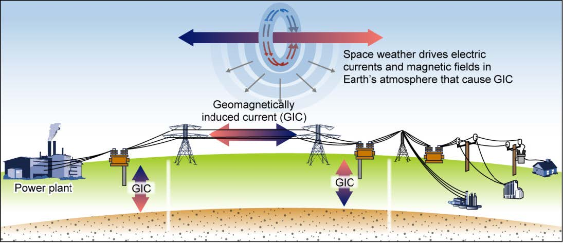 Space weather can severely impact the energy sector by inducing damaging currents, called ‘Geomagnetically Induced Current (GICs)’, in long power lines, causing overheating and destroying transformers, creating grid instability, triggering protective shutdowns. Additionally, space weather can disrupt satellite services crucial for grid management, potentially leading to widespread, long-term blackouts.