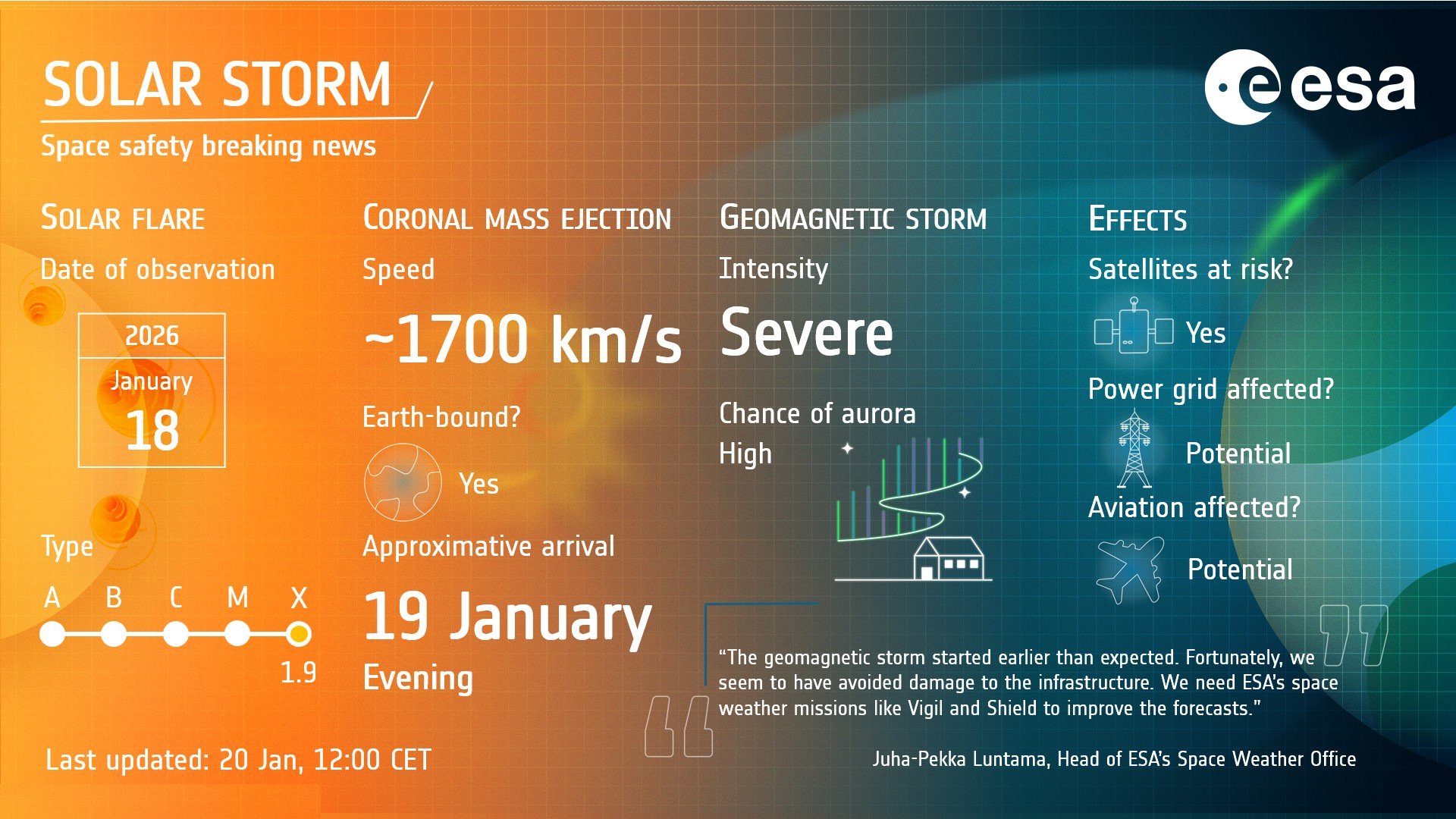 ESA (2026): “ESA monitoring January 2026 space weather event”. https://www.esa.int/Space_Safety/Space_weather/ESA_monitoring_January_2026_space_weather_event